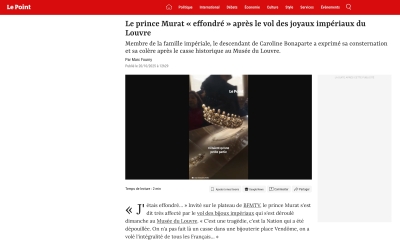 Le Point: "Prince Murat "devastated" by the theft of the imperial jewels from the Louvre".
