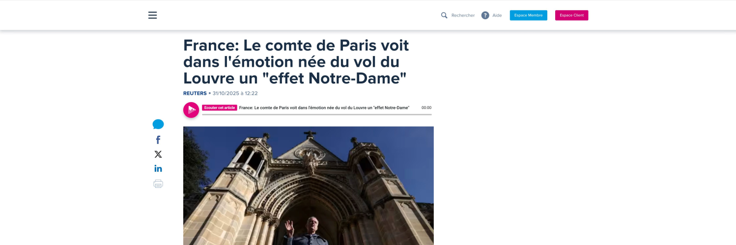 Boursorama: "France: The Count of Paris sees the emotion surrounding the theft of the Louvre as a "Notre-Dame effect"".