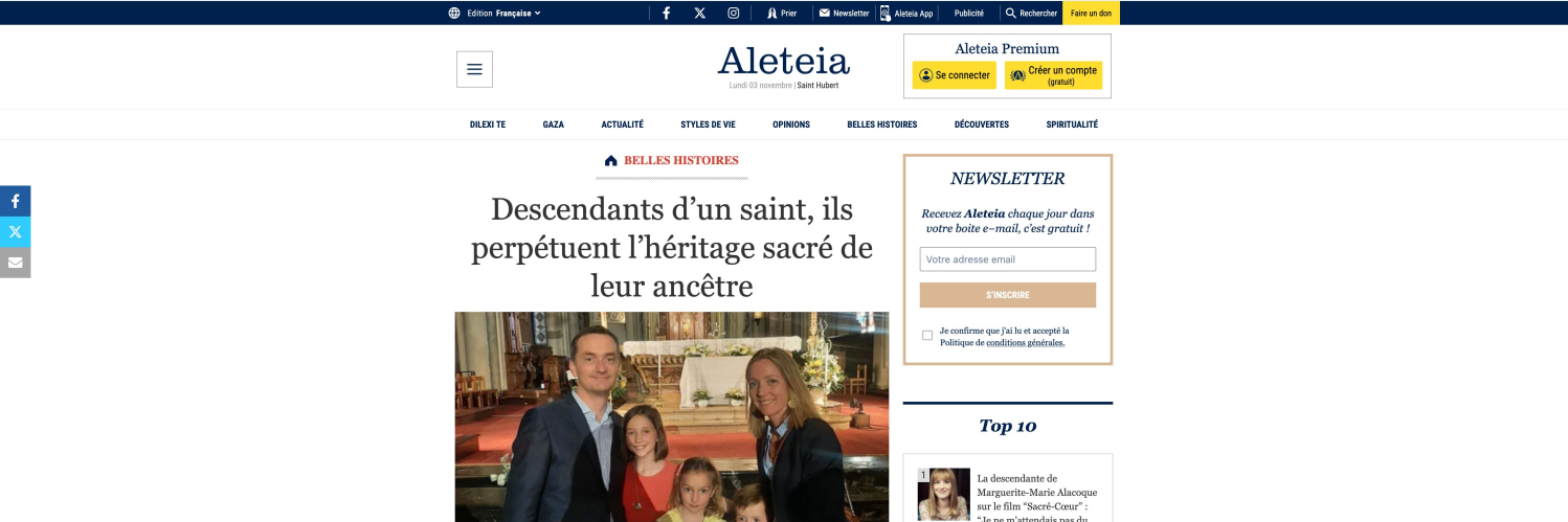 Aleteia : "Descendants d’un saint, ils perpétuent l’héritage sacré de leur ancêtre"